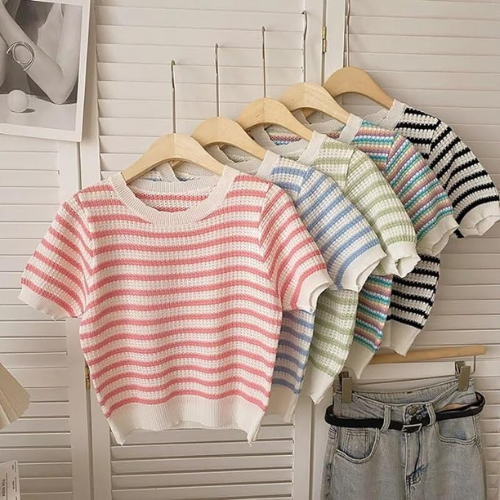 Be the first to review “ICW Women’s Acrylic Knitted Half Sleeve Round Neck Horizontal Stripe Crop Top T-Shirt” Cancel reply