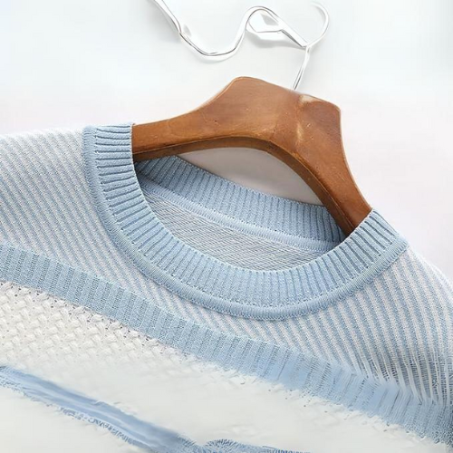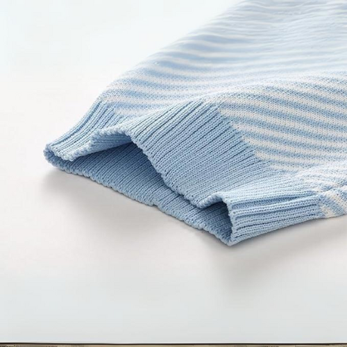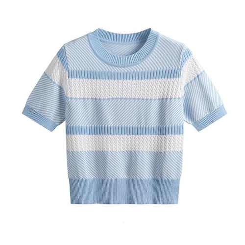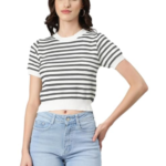 ICW Women's Acrylic Knitted Half Sleeve Round Neck Horizontal Stripe Crop Top T-Shirt